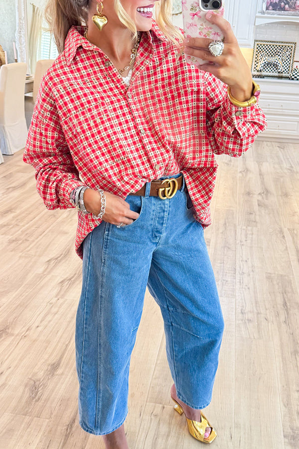Boho Plaid Button Down Washed Shirt