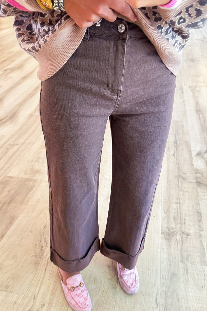 Brown Solid Mid-Rise Ankle Pants