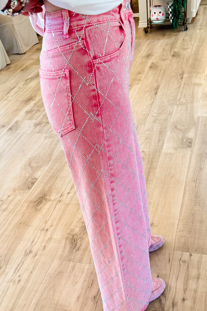 We're glad you've clicked on our new Casual Rhinestone Wide Leg Jeans as we're really into its casual vibes! The unique design make this a great choice for any stylish girl.