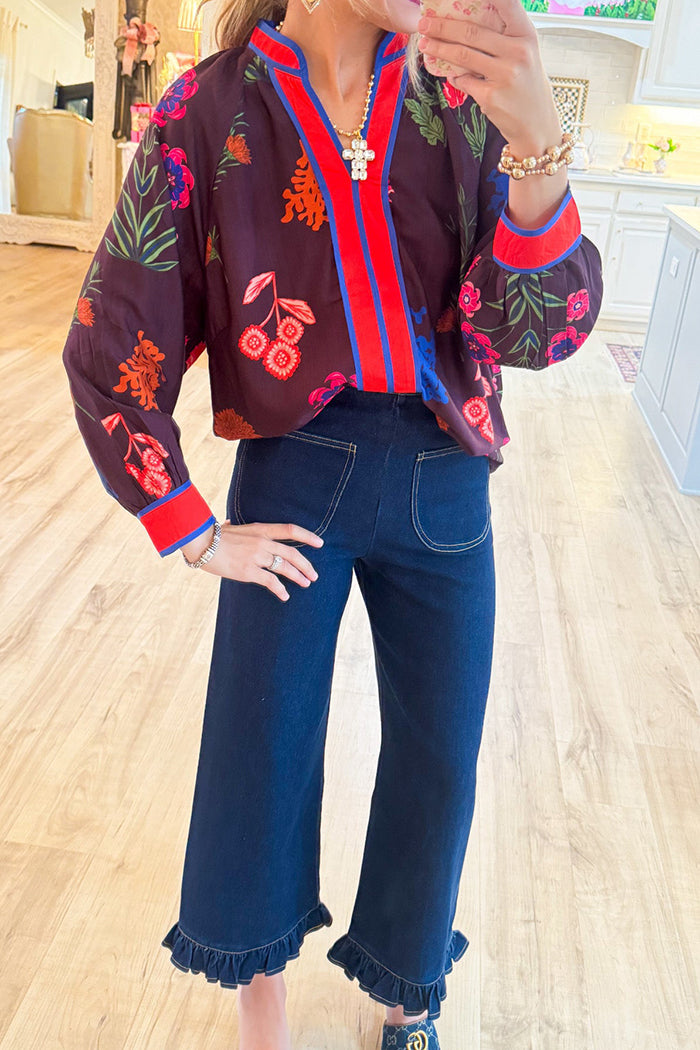 Denim Pocket Washed Ruffle Hem Pants